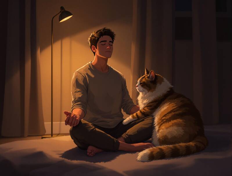 Most often, anxiety strikes at night. When silence sets in, when shadows grow long, and buried fears rise to the surface. So instead of fighting insomnia, I turn these nights into rituals. I sit, I breathe, and I meditate until my eyelids grow heavy. Sometimes, I fall asleep mid-meditation, my hand still resting on Cassie. Other times, I stay awake but calm, as if after a storm.